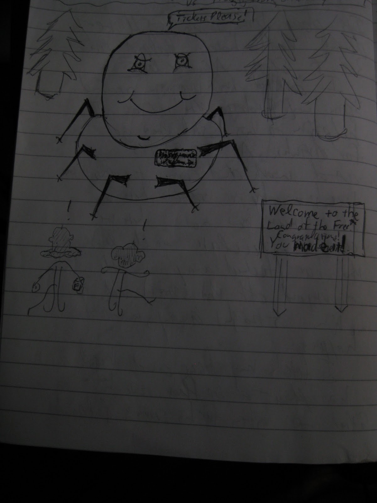 | "Welcome to the Land of the Free*. Congratulations, YOU made IT!" "Tickets, please!" |